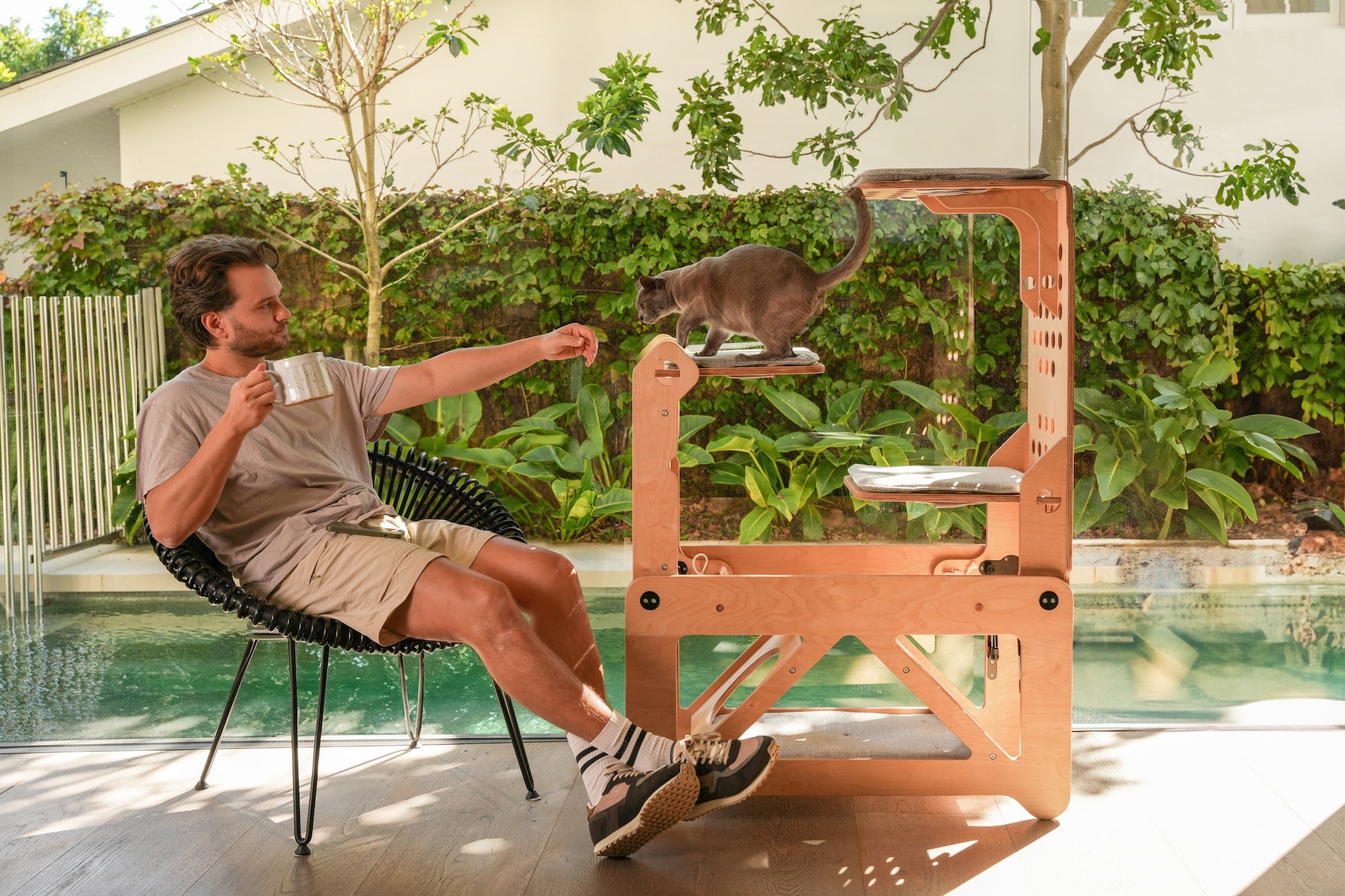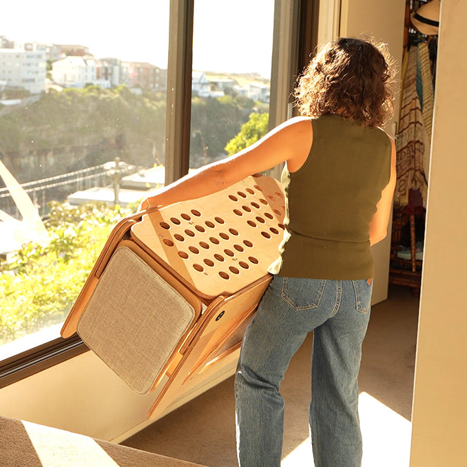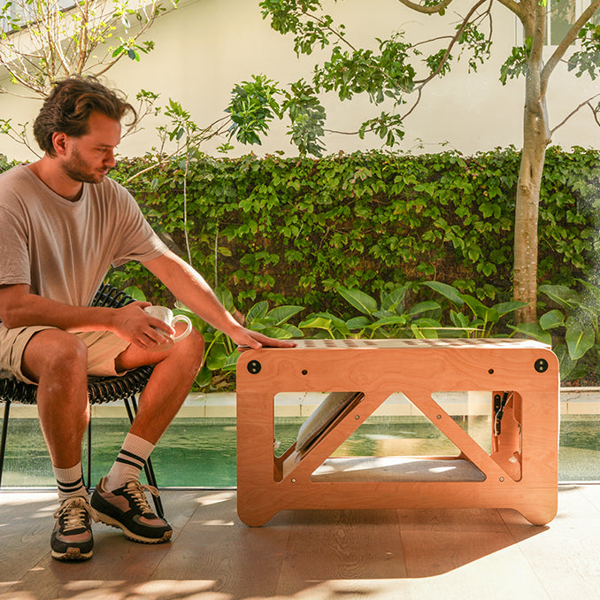Our patented foldaway system, proudly designed in Australia. Made from premium plywood, this bench tower is the most sophisticated cat furniture on the market. A first-of-its-kind design that considers you, your home, and your cat.